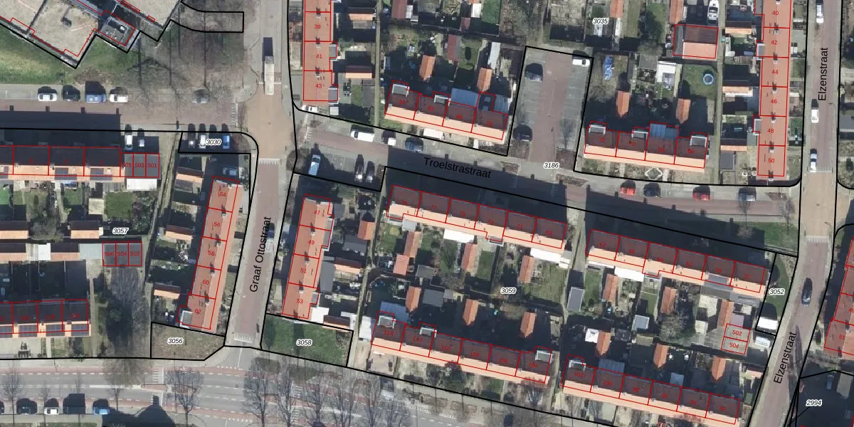 Troelstrastraat 77 is gelegen op kadastraal perceel VEL01G3059. Deze kadastrale aanduiding is uniek en wordt gebruikt door het Kadaster om eigendomsrechten en andere zakelijke rechten vast te leggen. Het perceel maakt onderdeel uit van de kadastrale gemeente Velp Gelderland.