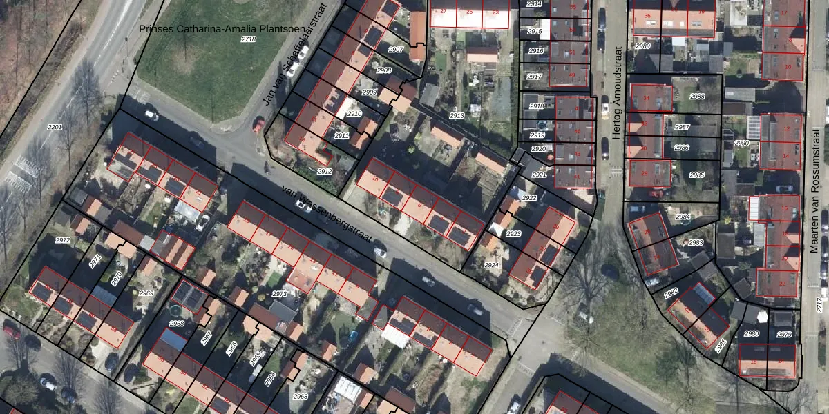 Het perceel waarop van Wassenbergstraat 6 staat heeft een oppervlakte van 1884 m². Dit is een zeer groot perceel. De perceeloppervlakte wordt geregistreerd door het Kadaster. Gedetailleerde informatie over de maten van dit perceel kunt u vinden in het rapport Kadastrale kaart met maatvoering van van Wassenbergstraat 6.