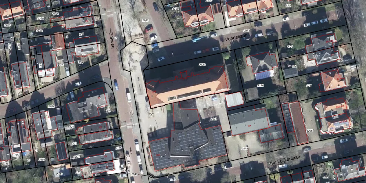 Vondellaan 15 is gelegen op kadastraal perceel VEL01F2538. Deze kadastrale aanduiding is uniek en wordt gebruikt door het Kadaster om eigendomsrechten en andere zakelijke rechten vast te leggen. Het perceel maakt onderdeel uit van de kadastrale gemeente Velp Gelderland.