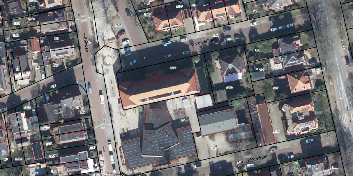 Vondellaan 19 is gelegen op kadastraal perceel VEL01F2538. Deze kadastrale aanduiding is uniek en wordt gebruikt door het Kadaster om eigendomsrechten en andere zakelijke rechten vast te leggen. Het perceel maakt onderdeel uit van de kadastrale gemeente Velp Gelderland.