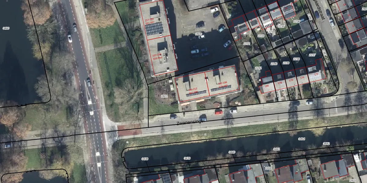 Zwanensingel 586 is gelegen op kadastraal perceel VEL01H2821. Deze kadastrale aanduiding is uniek en wordt gebruikt door het Kadaster om eigendomsrechten en andere zakelijke rechten vast te leggen. Het perceel maakt onderdeel uit van de kadastrale gemeente Velp Gelderland.