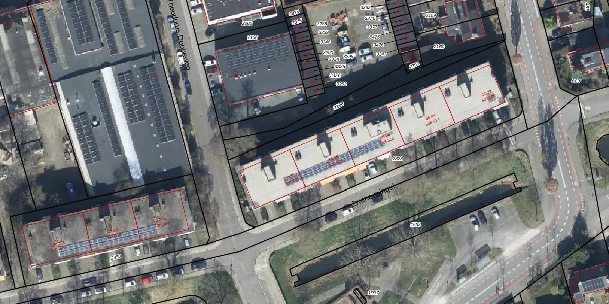 Het perceel waarop Zwanensingel 66 staat heeft een oppervlakte van 2370 m². Dit is een zeer groot perceel. De perceeloppervlakte wordt geregistreerd door het Kadaster. Gedetailleerde informatie over de maten van dit perceel kunt u vinden in het rapport Kadastrale kaart met maatvoering van Zwanensingel 66.