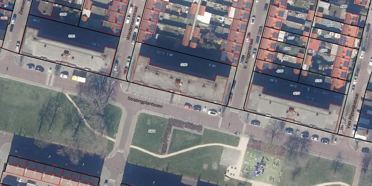 Het perceel waarop Stratingplantsoen 49 staat heeft een oppervlakte van 1218 m². Dit is een zeer groot perceel. De perceeloppervlakte wordt geregistreerd door het Kadaster. Gedetailleerde informatie over de maten van dit perceel kunt u vinden in het rapport Kadastrale kaart met maatvoering van Stratingplantsoen 49.