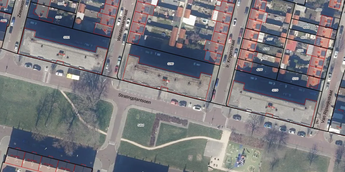 Stratingplantsoen 49-A is gelegen op kadastraal perceel VSN01B3280. Deze kadastrale aanduiding is uniek en wordt gebruikt door het Kadaster om eigendomsrechten en andere zakelijke rechten vast te leggen. Het perceel maakt onderdeel uit van de kadastrale gemeente Velsen.