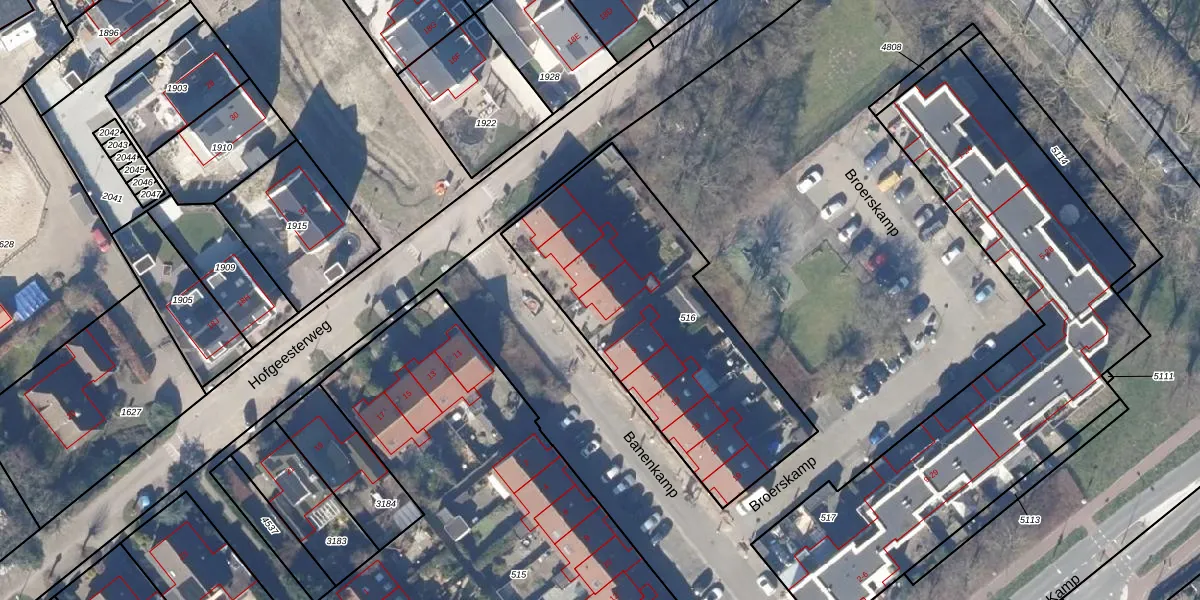 Het perceel waarop Banenkamp 7 staat heeft een oppervlakte van 1295 m². Dit is een zeer groot perceel. De perceeloppervlakte wordt geregistreerd door het Kadaster. Gedetailleerde informatie over de maten van dit perceel kunt u vinden in het rapport Kadastrale kaart met maatvoering van Banenkamp 7.