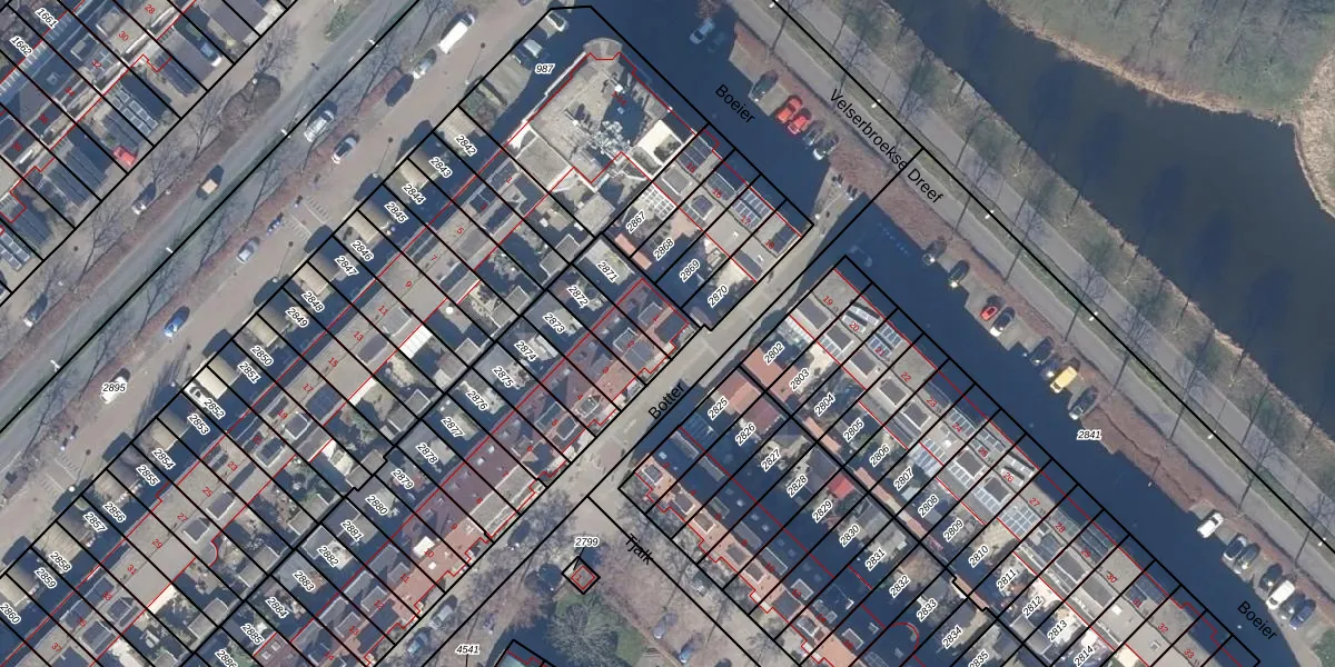 Botter 1 is gelegen op kadastraal perceel VSN01P2871. Deze kadastrale aanduiding is uniek en wordt gebruikt door het Kadaster om eigendomsrechten en andere zakelijke rechten vast te leggen. Het perceel maakt onderdeel uit van de kadastrale gemeente Velsen.
