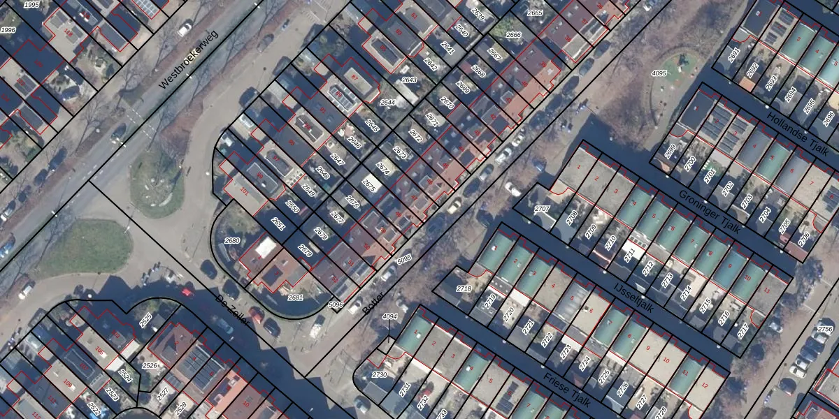 Gebruik de zoekbalk of klik op een perceel voor informatie over de adressen binnen dit perceel.