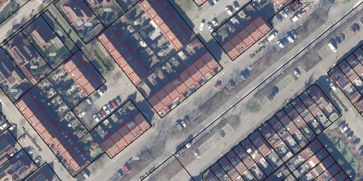 Het perceel waarop De Kamp 26 staat heeft een oppervlakte van 2530 m². Dit is een zeer groot perceel. De perceeloppervlakte wordt geregistreerd door het Kadaster. Gedetailleerde informatie over de maten van dit perceel kunt u vinden in het rapport Kadastrale kaart met maatvoering van De Kamp 26.