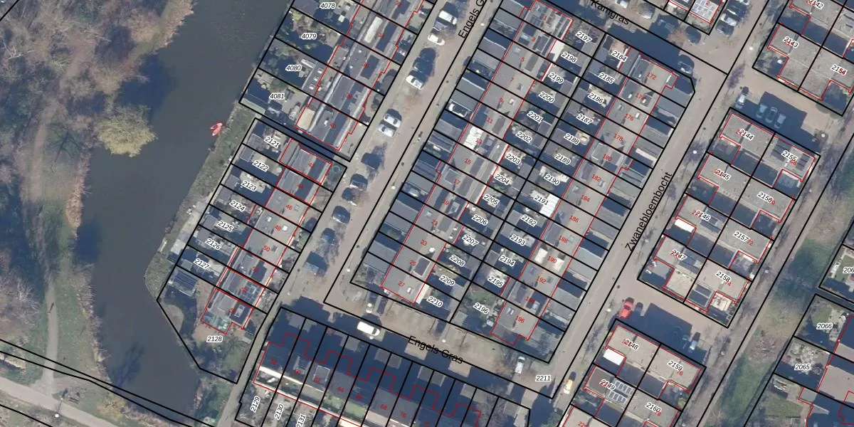 Engels Gras 21 is gelegen op kadastraal perceel VSN01P2207. Deze kadastrale aanduiding is uniek en wordt gebruikt door het Kadaster om eigendomsrechten en andere zakelijke rechten vast te leggen. Het perceel maakt onderdeel uit van de kadastrale gemeente Velsen.