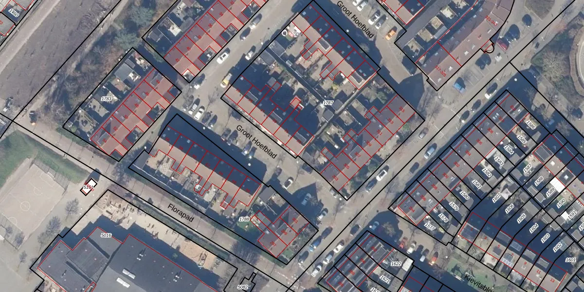 Het perceel waarop Groot Hoefblad 23 staat heeft een oppervlakte van 2360 m². Dit is een zeer groot perceel. De perceeloppervlakte wordt geregistreerd door het Kadaster. Gedetailleerde informatie over de maten van dit perceel kunt u vinden in het rapport Kadastrale kaart met maatvoering van Groot Hoefblad 23.