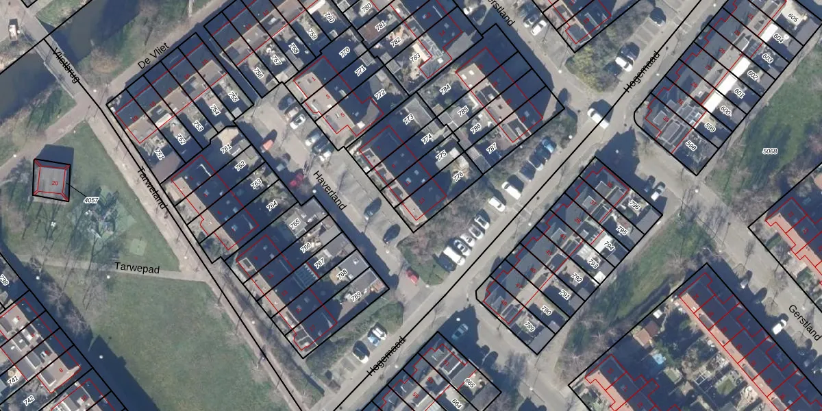 Gebruik de zoekbalk of klik op een perceel voor informatie over de adressen binnen dit perceel.
