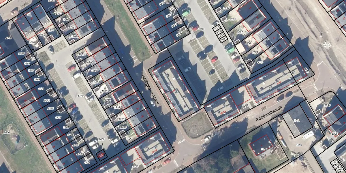 Het perceel waarop Heijligegeestcroft 21 staat heeft een oppervlakte van 1406 m². Dit is een zeer groot perceel. De perceeloppervlakte wordt geregistreerd door het Kadaster. Gedetailleerde informatie over de maten van dit perceel kunt u vinden in het rapport Kadastrale kaart met maatvoering van Heijligegeestcroft 21.
