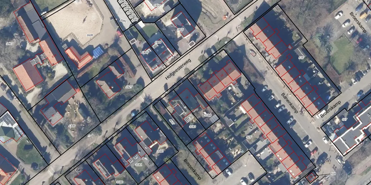Hofgeesterweg 19 is gelegen op kadastraal perceel VSN01P3184. Deze kadastrale aanduiding is uniek en wordt gebruikt door het Kadaster om eigendomsrechten en andere zakelijke rechten vast te leggen. Het perceel maakt onderdeel uit van de kadastrale gemeente Velsen.