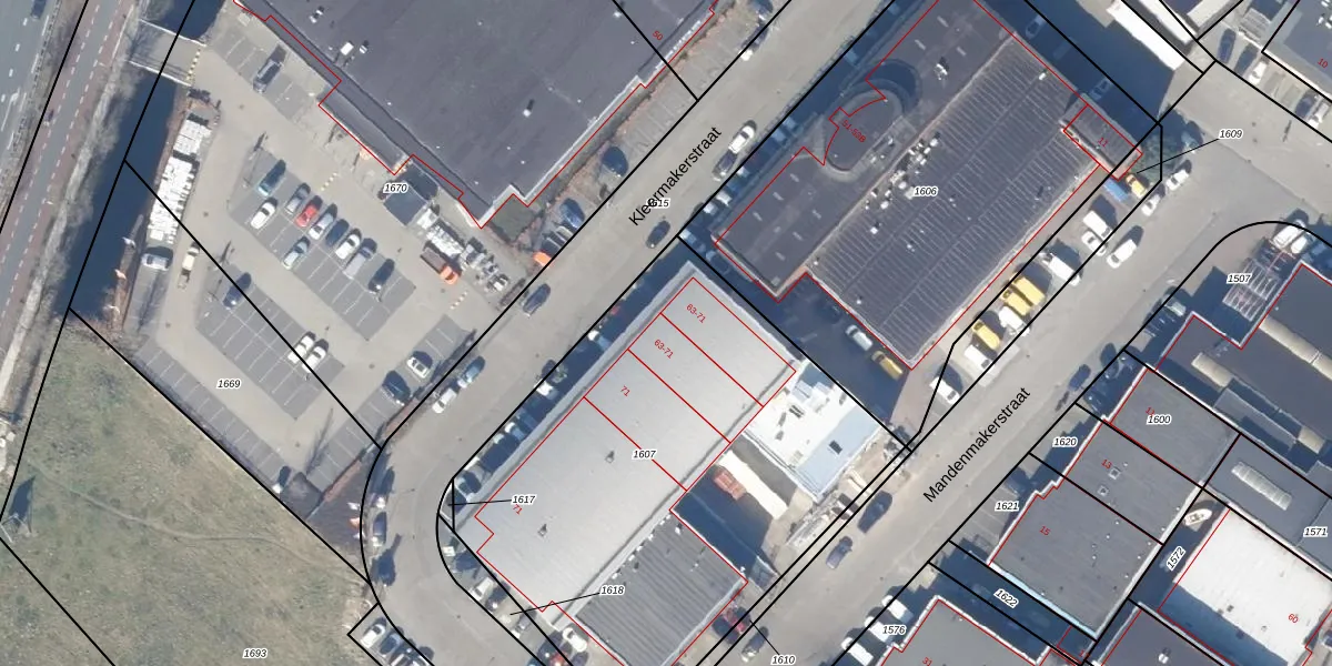 Het perceel waarop Kleermakerstraat 63 staat heeft een oppervlakte van 2466 m². Dit is een zeer groot perceel. De perceeloppervlakte wordt geregistreerd door het Kadaster. Gedetailleerde informatie over de maten van dit perceel kunt u vinden in het rapport Kadastrale kaart met maatvoering van Kleermakerstraat 63.