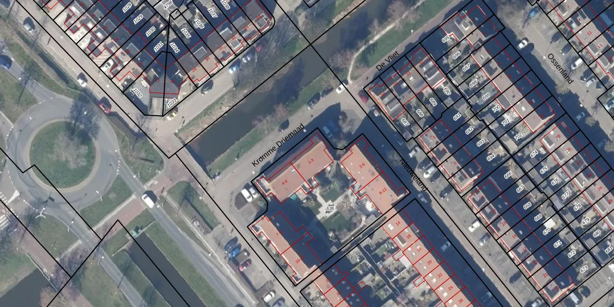 Kromme Driemaad 1 is gelegen op kadastraal perceel VSN01P636. Deze kadastrale aanduiding is uniek en wordt gebruikt door het Kadaster om eigendomsrechten en andere zakelijke rechten vast te leggen. Het perceel maakt onderdeel uit van de kadastrale gemeente Velsen.