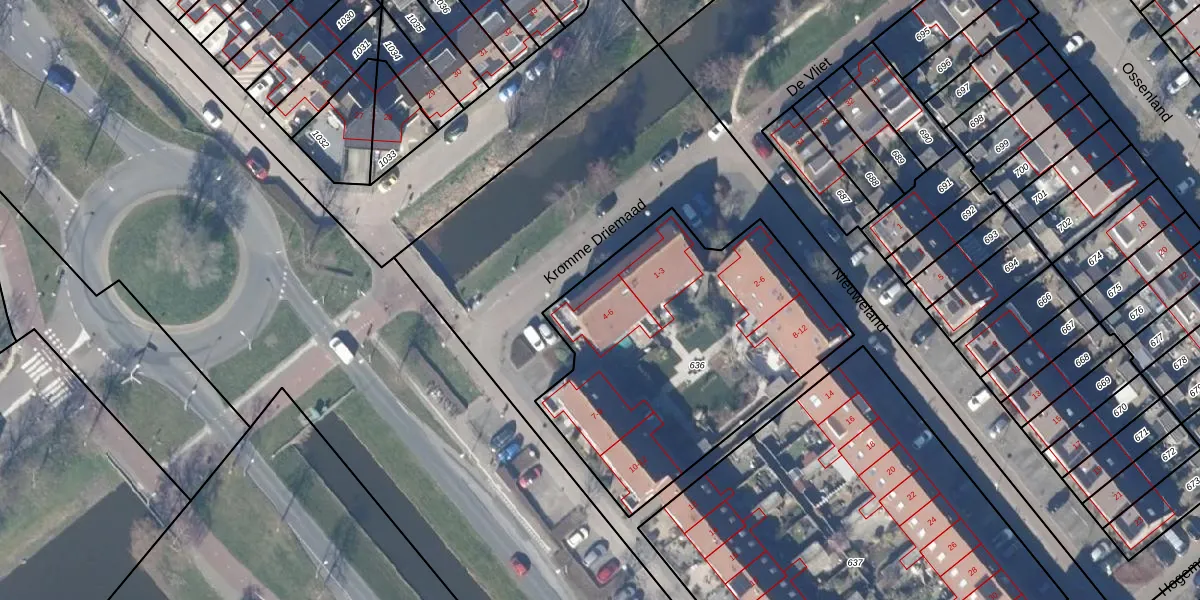 Het perceel waarop Kromme Driemaad 6 staat heeft een oppervlakte van 1502 m². Dit is een zeer groot perceel. De perceeloppervlakte wordt geregistreerd door het Kadaster. Gedetailleerde informatie over de maten van dit perceel kunt u vinden in het rapport Kadastrale kaart met maatvoering van Kromme Driemaad 6.