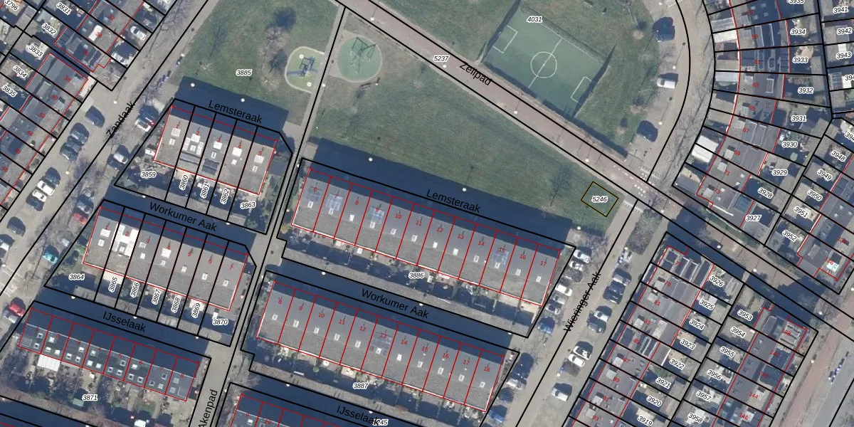 Lemsteraak 11 is gelegen op kadastraal perceel VSN01P3886. Deze kadastrale aanduiding is uniek en wordt gebruikt door het Kadaster om eigendomsrechten en andere zakelijke rechten vast te leggen. Het perceel maakt onderdeel uit van de kadastrale gemeente Velsen.