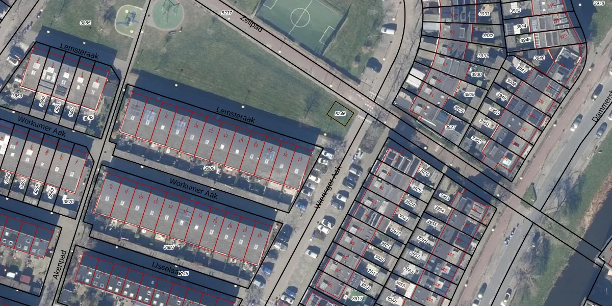 Het perceel waarop Lemsteraak 17 staat heeft een oppervlakte van 1530 m². Dit is een zeer groot perceel. De perceeloppervlakte wordt geregistreerd door het Kadaster. Gedetailleerde informatie over de maten van dit perceel kunt u vinden in het rapport Kadastrale kaart met maatvoering van Lemsteraak 17.