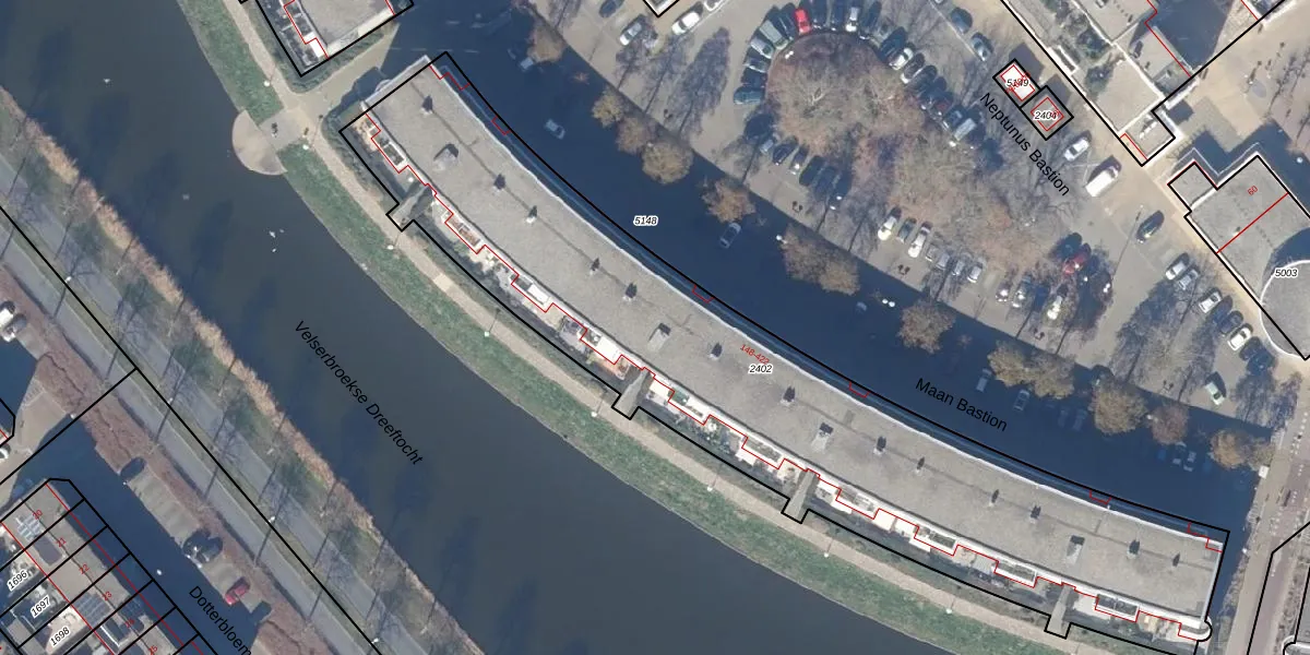 Maan Bastion 252 is gelegen op kadastraal perceel VSN01P2402. Deze kadastrale aanduiding is uniek en wordt gebruikt door het Kadaster om eigendomsrechten en andere zakelijke rechten vast te leggen. Het perceel maakt onderdeel uit van de kadastrale gemeente Velsen.