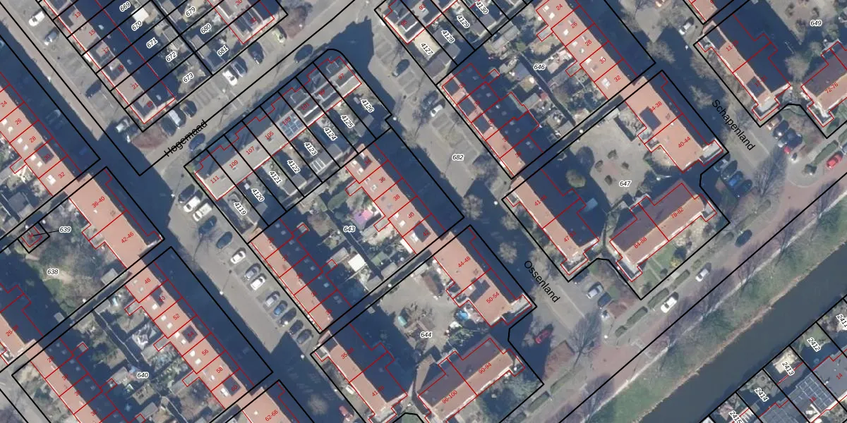 Ossenland 40 is gelegen op kadastraal perceel VSN01P643. Deze kadastrale aanduiding is uniek en wordt gebruikt door het Kadaster om eigendomsrechten en andere zakelijke rechten vast te leggen. Het perceel maakt onderdeel uit van de kadastrale gemeente Velsen.