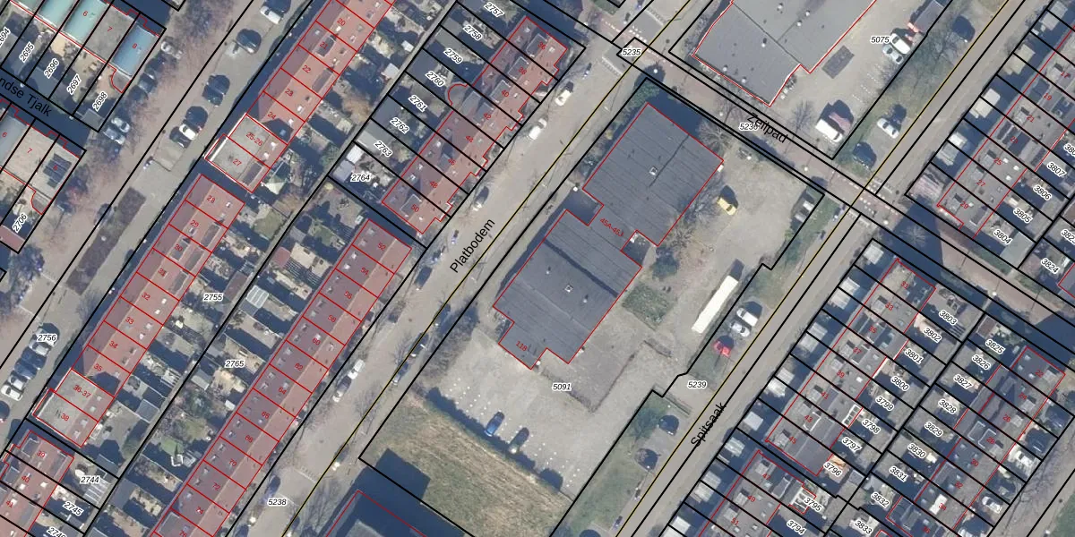 Het perceel waarop Platbodem 45-H staat heeft een oppervlakte van 3435 m². Dit is een zeer groot perceel. De perceeloppervlakte wordt geregistreerd door het Kadaster. Gedetailleerde informatie over de maten van dit perceel kunt u vinden in het rapport Kadastrale kaart met maatvoering van Platbodem 45-H.