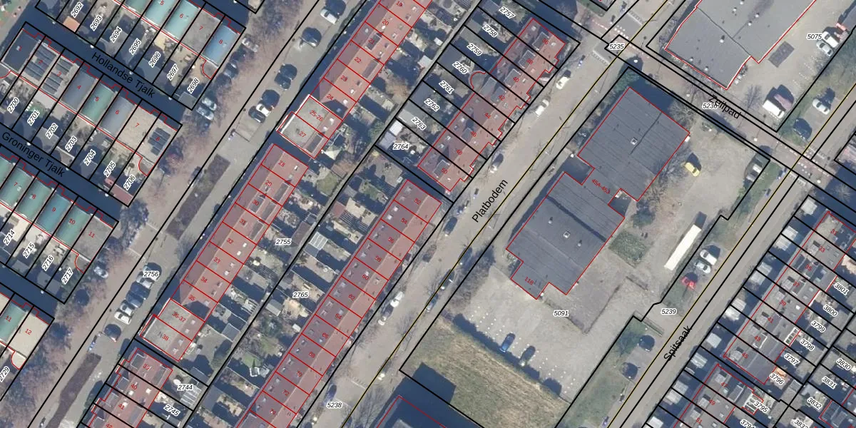 Het perceel waarop Platbodem 52 staat heeft een oppervlakte van 1940 m². Dit is een zeer groot perceel. De perceeloppervlakte wordt geregistreerd door het Kadaster. Gedetailleerde informatie over de maten van dit perceel kunt u vinden in het rapport Kadastrale kaart met maatvoering van Platbodem 52.