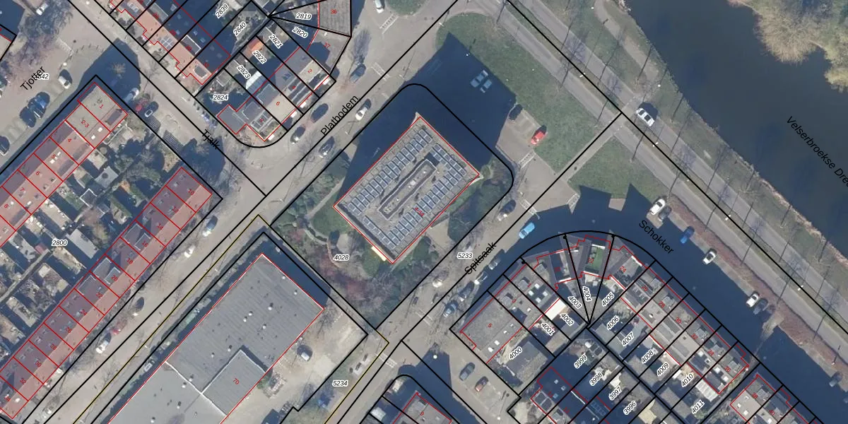 Spitsaak 16 is gelegen op kadastraal perceel VSN01P4028. Deze kadastrale aanduiding is uniek en wordt gebruikt door het Kadaster om eigendomsrechten en andere zakelijke rechten vast te leggen. Het perceel maakt onderdeel uit van de kadastrale gemeente Velsen.