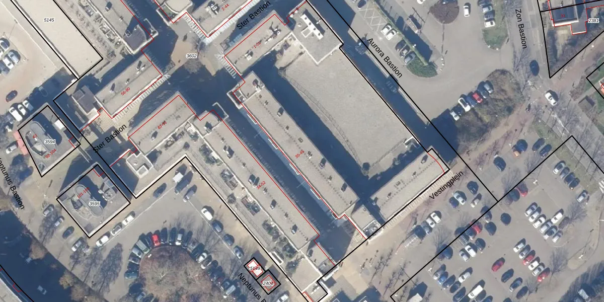 Het perceel waarop Ster Bastion 19 staat heeft een oppervlakte van 1,1 ha. Dit is een zeer groot perceel. De perceeloppervlakte wordt geregistreerd door het Kadaster. Gedetailleerde informatie over de maten van dit perceel kunt u vinden in het rapport Kadastrale kaart met maatvoering van Ster Bastion 19.