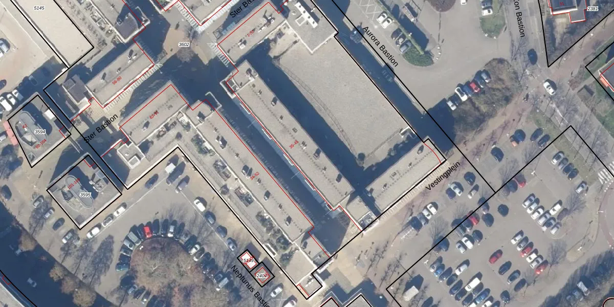 Het perceel waarop Ster Bastion 21 staat heeft een oppervlakte van 1,1 ha. Dit is een zeer groot perceel. De perceeloppervlakte wordt geregistreerd door het Kadaster. Gedetailleerde informatie over de maten van dit perceel kunt u vinden in het rapport Kadastrale kaart met maatvoering van Ster Bastion 21.