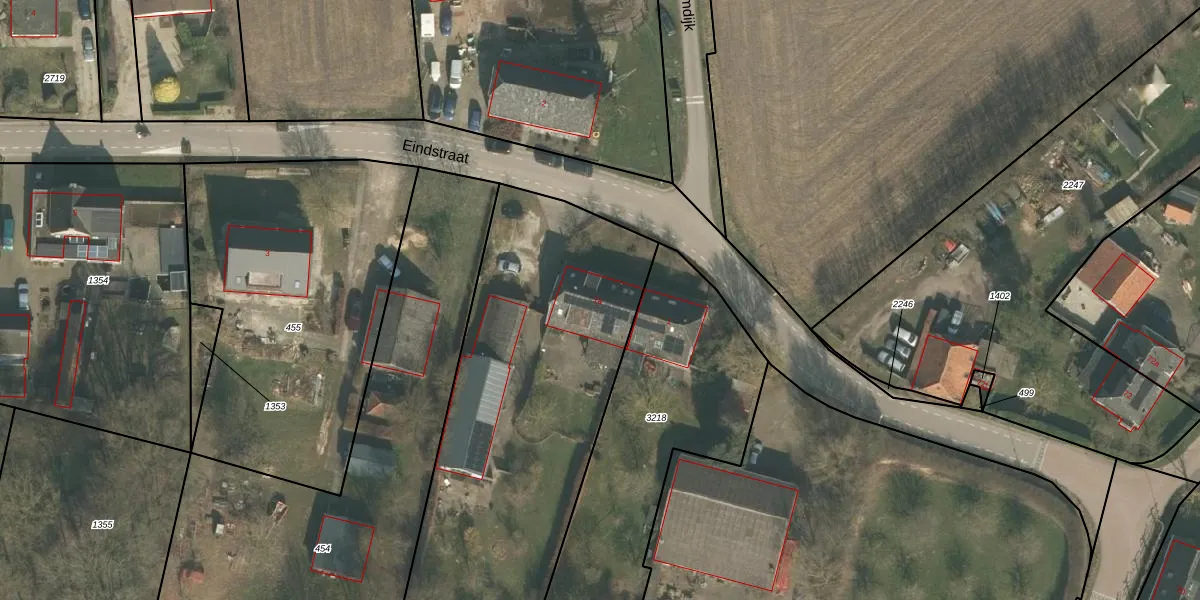 Het perceel waarop Eindstraat 1-a staat heeft een oppervlakte van 9593 m². Dit is een zeer groot perceel. De perceeloppervlakte wordt geregistreerd door het Kadaster. Gedetailleerde informatie over de maten van dit perceel kunt u vinden in het rapport Kadastrale kaart met maatvoering van Eindstraat 1-a.