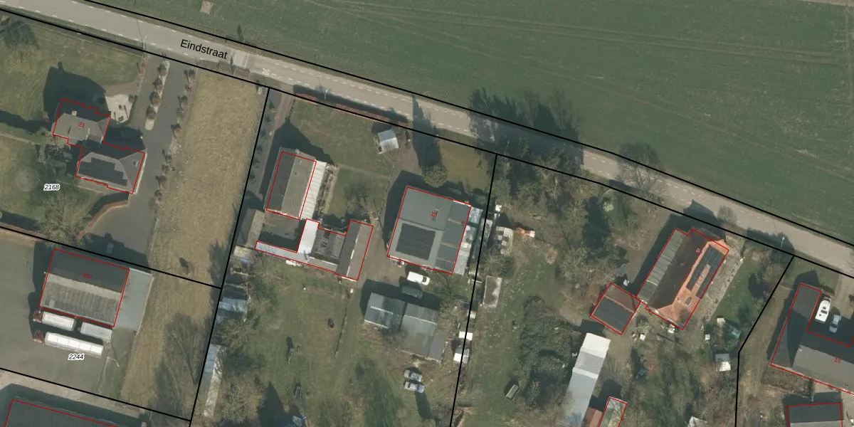 Het perceel waarop Eindstraat 19 staat heeft een oppervlakte van 9975 m². Dit is een zeer groot perceel. De perceeloppervlakte wordt geregistreerd door het Kadaster. Gedetailleerde informatie over de maten van dit perceel kunt u vinden in het rapport Kadastrale kaart met maatvoering van Eindstraat 19.