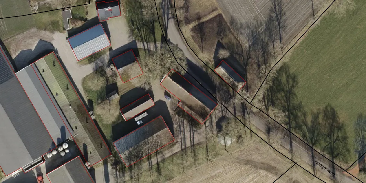 Het perceel waarop Hoogenweg 59 staat heeft een oppervlakte van 19,0 ha. Dit is een zeer groot perceel. De perceeloppervlakte wordt geregistreerd door het Kadaster. Gedetailleerde informatie over de maten van dit perceel kunt u vinden in het rapport Kadastrale kaart met maatvoering van Hoogenweg 59.