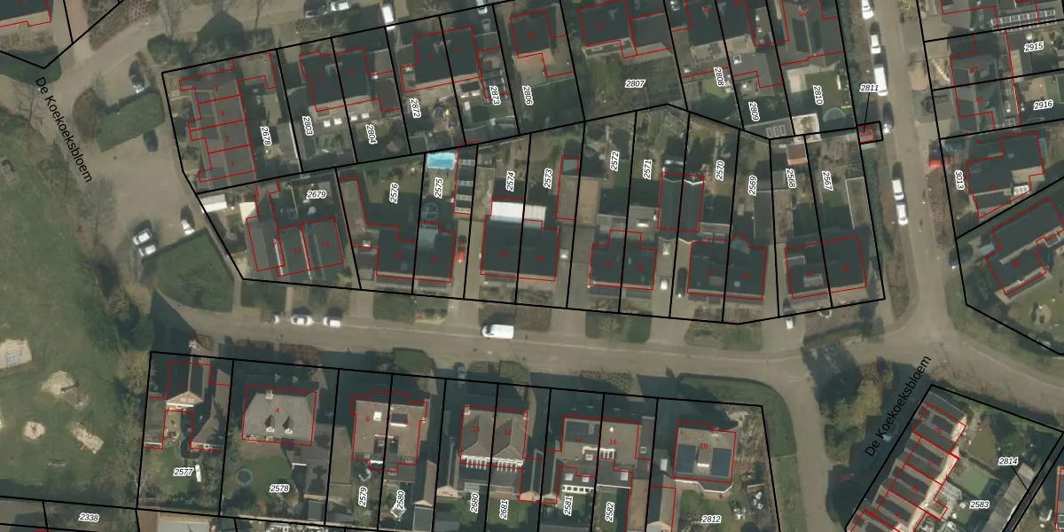 Het perceel waarop De Koekoeksbloem 21 staat heeft een oppervlakte van 331 m². Dit is een groot perceel. De perceeloppervlakte wordt geregistreerd door het Kadaster. Gedetailleerde informatie over de maten van dit perceel kunt u vinden in het rapport Kadastrale kaart met maatvoering van De Koekoeksbloem 21.