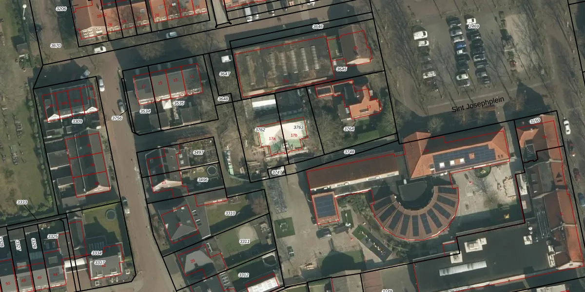 Gebruik de zoekbalk of klik op een perceel voor informatie over de adressen binnen dit perceel.