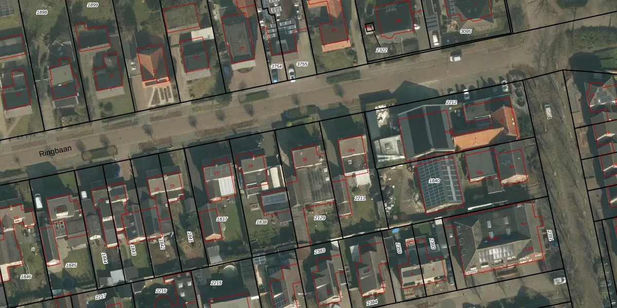Het perceel waarop Ringbaan 26 staat heeft een oppervlakte van 592 m². Dit is een groot perceel. De perceeloppervlakte wordt geregistreerd door het Kadaster. Gedetailleerde informatie over de maten van dit perceel kunt u vinden in het rapport Kadastrale kaart met maatvoering van Ringbaan 26.