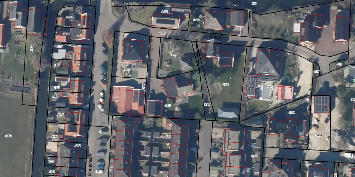 Het perceel waarop Kadijk 5 staat heeft een oppervlakte van 953 m². Dit is een groot perceel. De perceeloppervlakte wordt geregistreerd door het Kadaster. Gedetailleerde informatie over de maten van dit perceel kunt u vinden in het rapport Kadastrale kaart met maatvoering van Kadijk 5.