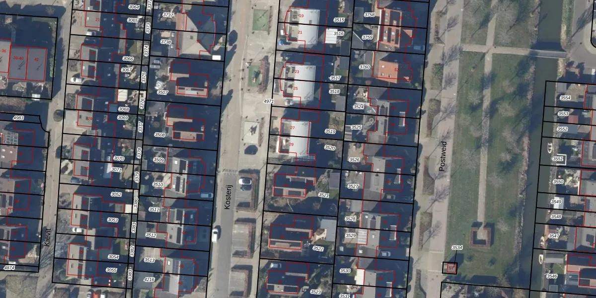 Het perceel waarop Kosterij 29 staat heeft een oppervlakte van 246 m². Dit is een middelgroot perceel. De perceeloppervlakte wordt geregistreerd door het Kadaster. Gedetailleerde informatie over de maten van dit perceel kunt u vinden in het rapport Kadastrale kaart met maatvoering van Kosterij 29.