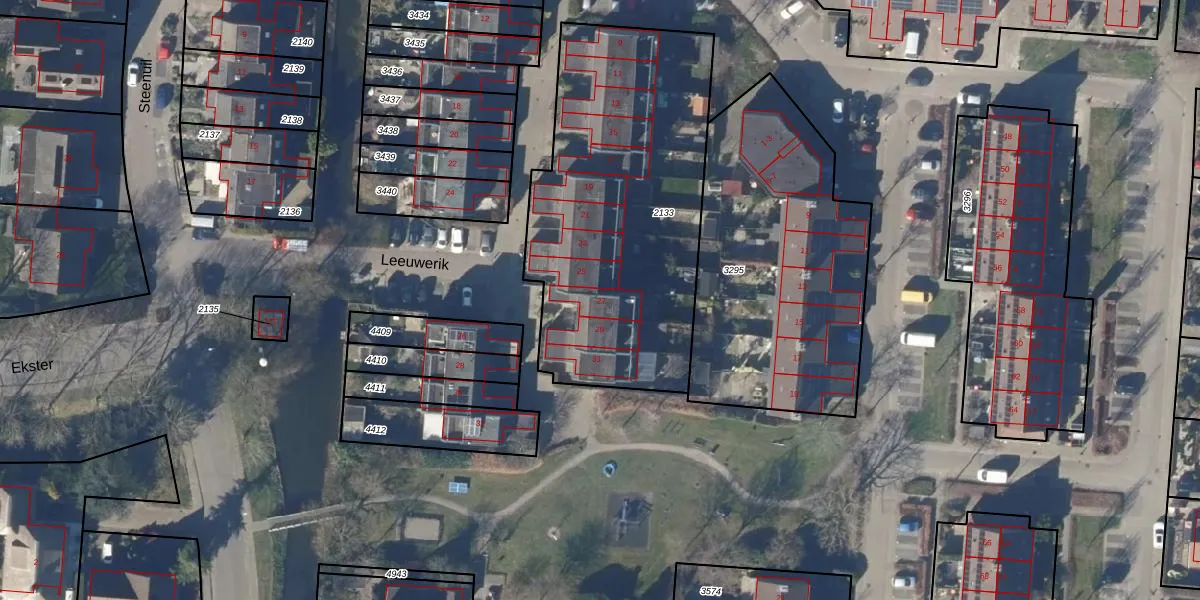 Het perceel waarop Leeuwerik 27 staat heeft een oppervlakte van 1600 m². Dit is een zeer groot perceel. De perceeloppervlakte wordt geregistreerd door het Kadaster. Gedetailleerde informatie over de maten van dit perceel kunt u vinden in het rapport Kadastrale kaart met maatvoering van Leeuwerik 27.
