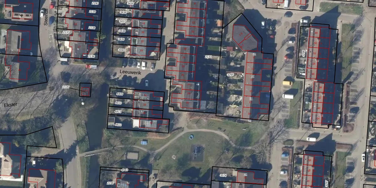 Het perceel waarop Leeuwerik 29 staat heeft een oppervlakte van 1600 m². Dit is een zeer groot perceel. De perceeloppervlakte wordt geregistreerd door het Kadaster. Gedetailleerde informatie over de maten van dit perceel kunt u vinden in het rapport Kadastrale kaart met maatvoering van Leeuwerik 29.
