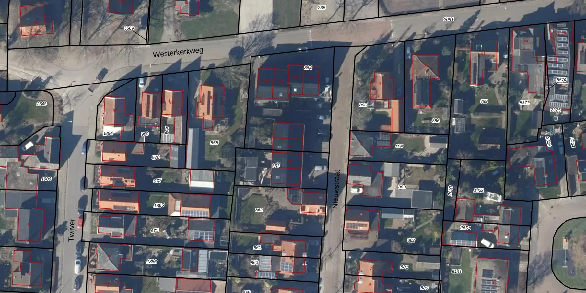 Het perceel waarop Nieuwstraat 2-A staat heeft een oppervlakte van 970 m². Dit is een groot perceel. De perceeloppervlakte wordt geregistreerd door het Kadaster. Gedetailleerde informatie over de maten van dit perceel kunt u vinden in het rapport Kadastrale kaart met maatvoering van Nieuwstraat 2-A.