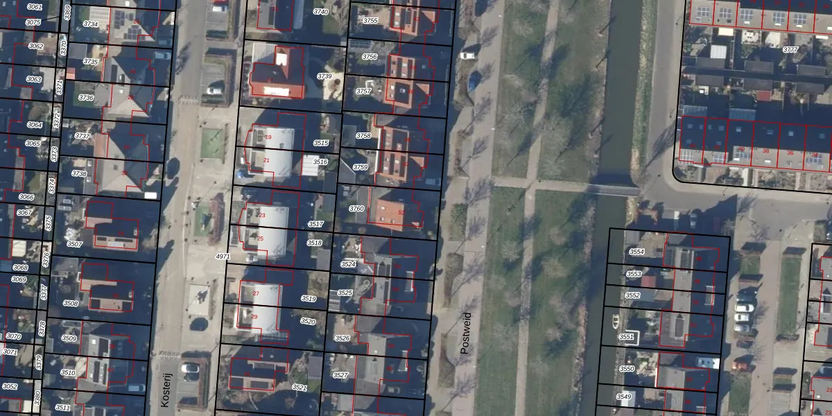 Het perceel waarop Postweid 52 staat heeft een oppervlakte van 301 m². Dit is een groot perceel. De perceeloppervlakte wordt geregistreerd door het Kadaster. Gedetailleerde informatie over de maten van dit perceel kunt u vinden in het rapport Kadastrale kaart met maatvoering van Postweid 52.