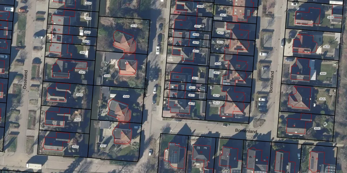 Gebruik de zoekbalk of klik op een perceel voor informatie over de adressen binnen dit perceel.