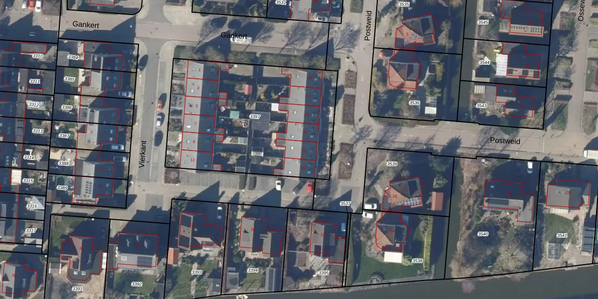 Het perceel waarop Vierkant 15 staat heeft een oppervlakte van 2000 m². Dit is een zeer groot perceel. De perceeloppervlakte wordt geregistreerd door het Kadaster. Gedetailleerde informatie over de maten van dit perceel kunt u vinden in het rapport Kadastrale kaart met maatvoering van Vierkant 15.