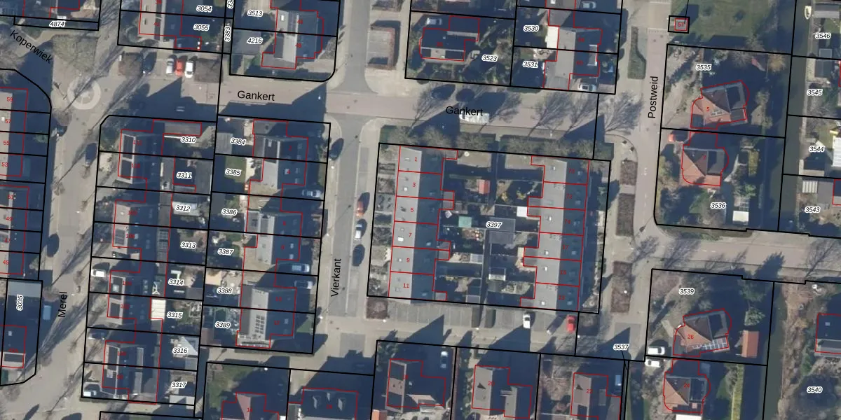 Het perceel waarop Vierkant 5 staat heeft een oppervlakte van 2000 m². Dit is een zeer groot perceel. De perceeloppervlakte wordt geregistreerd door het Kadaster. Gedetailleerde informatie over de maten van dit perceel kunt u vinden in het rapport Kadastrale kaart met maatvoering van Vierkant 5.
