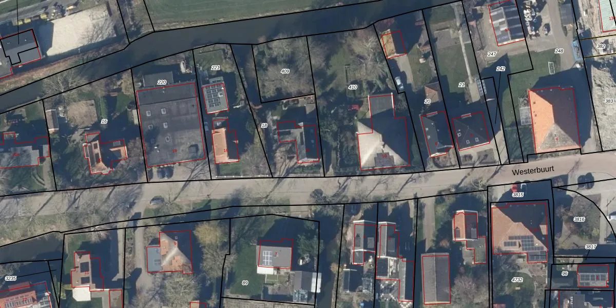 Gebruik de zoekbalk of klik op een perceel voor informatie over de adressen binnen dit perceel.