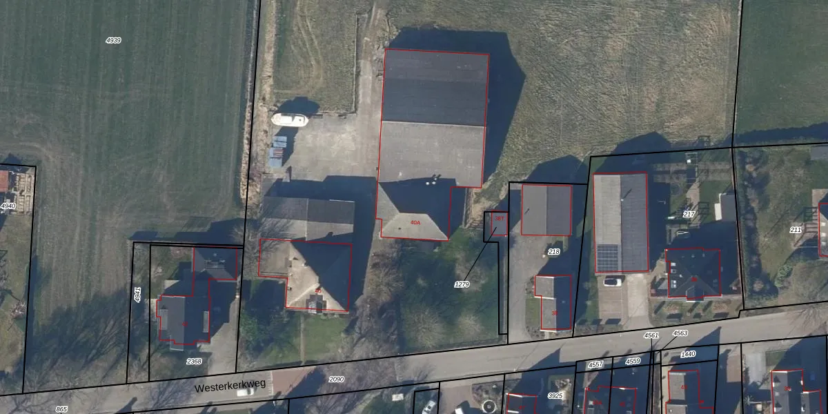 Het perceel waarop Westerkerkweg 40-A staat heeft een oppervlakte van 2,9 ha. Dit is een zeer groot perceel. De perceeloppervlakte wordt geregistreerd door het Kadaster. Gedetailleerde informatie over de maten van dit perceel kunt u vinden in het rapport Kadastrale kaart met maatvoering van Westerkerkweg 40-A.