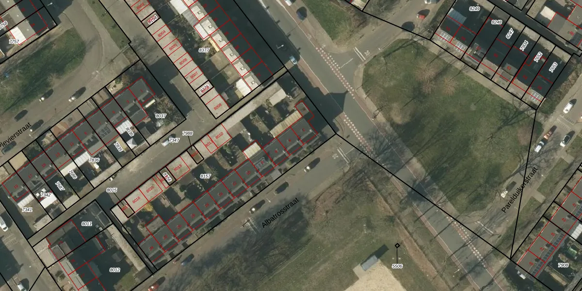 Het perceel waarop Albatrosstraat 4 staat heeft een oppervlakte van 2027 m². Dit is een zeer groot perceel. De perceeloppervlakte wordt geregistreerd door het Kadaster. Gedetailleerde informatie over de maten van dit perceel kunt u vinden in het rapport Kadastrale kaart met maatvoering van Albatrosstraat 4.