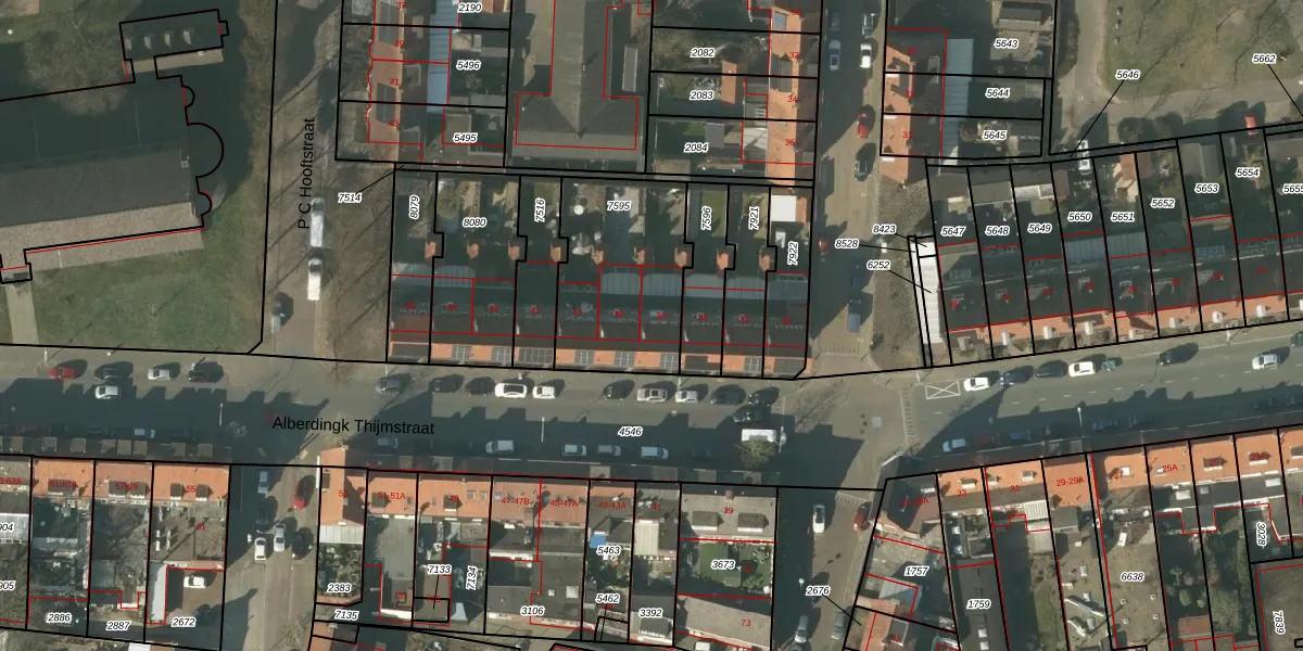 Het perceel waarop Alberdingk Thijmstraat 36 staat heeft een oppervlakte van 565 m². Dit is een groot perceel. De perceeloppervlakte wordt geregistreerd door het Kadaster. Gedetailleerde informatie over de maten van dit perceel kunt u vinden in het rapport Kadastrale kaart met maatvoering van Alberdingk Thijmstraat 36.