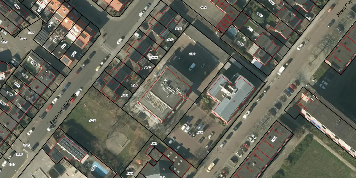 Het perceel waarop Albert Cuypstraat 1-H staat heeft een oppervlakte van 1832 m². Dit is een zeer groot perceel. De perceeloppervlakte wordt geregistreerd door het Kadaster. Gedetailleerde informatie over de maten van dit perceel kunt u vinden in het rapport Kadastrale kaart met maatvoering van Albert Cuypstraat 1-H.