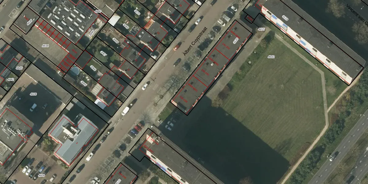 Albert Cuypstraat 218 is gelegen op kadastraal perceel VLO00C3120. Deze kadastrale aanduiding is uniek en wordt gebruikt door het Kadaster om eigendomsrechten en andere zakelijke rechten vast te leggen. Het perceel maakt onderdeel uit van de kadastrale gemeente Venlo.